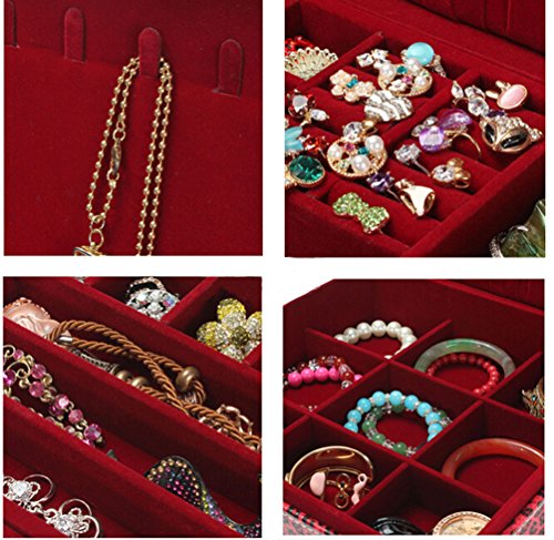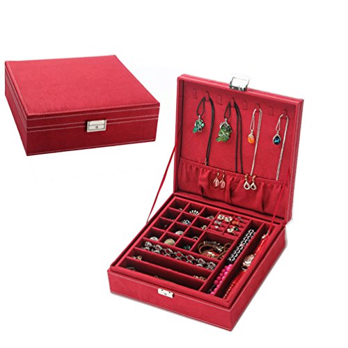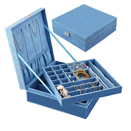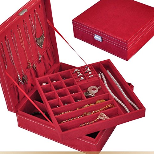 -. Feature : HIGH QUALITY: Premium PU leather surface, With soft flannelette Lining, an elegant Metal buttons lock (at the top level) for security. / EXQUISITE DESIGN AND SUITABLE DIMENTION: 10.23" x 10.23" x 3.54"(L x W x H), with Double layers in lining, excellently fit well with your demand / MULTIFUNCTION GIFT BOX: Well packaged with GIFT BOX, making this jewelry box a wonderful gift for Christmas, birthday, wife, friends, classmates and any women you want to spoil / CONVENIENCE AND SAVE SPACE: Convenient, Practical and exquisite case excellently Store and dramatic display your favorite jewelries in one convenient case / MAIN USAGE: Durable, Classic, and generous design fitting well with your wardrobe, Attractive jewelry box offers a stylish addition to the room. Perfect for Storage, Travel, Home, Business Trip, etc