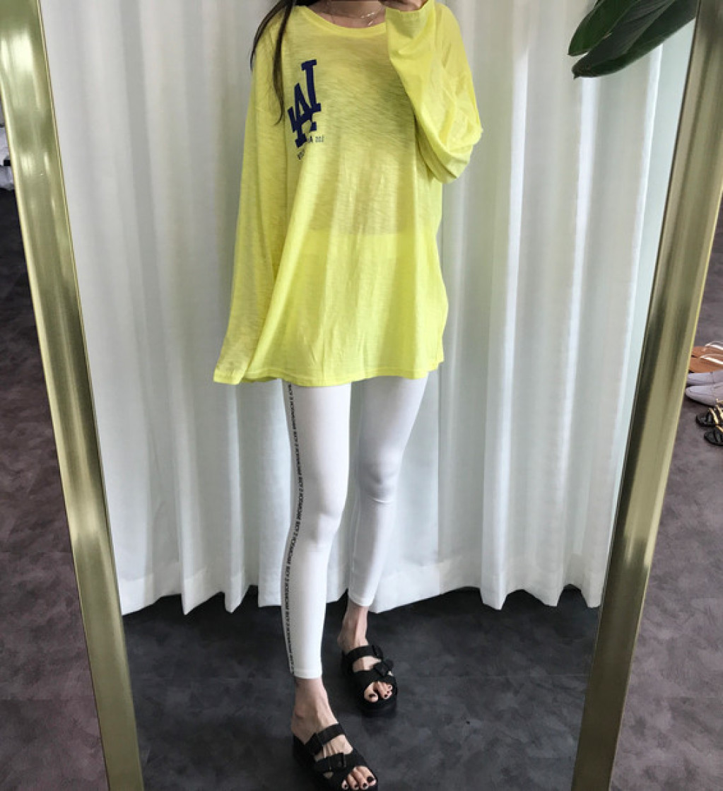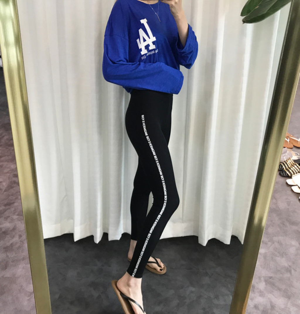 레깅스 옆 라인에 레터링 포인트가 들어가