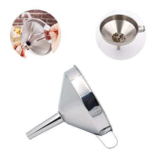 - Durable&Safe Stainless Steel Funnel:These funnels are made of premium high quality stainless steel,safe and durable to use.Compared with plastic or silicone funnels, stainless steel funnels could transfer large amount of items in one time without benting nor they would let out terrible odor when transfer hot cooking oils.Meanwhile,a detachable strainer is included to filter large items from liquids to create a healthier life for your family.