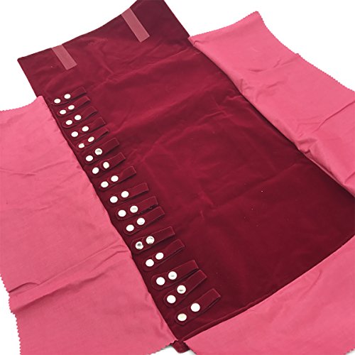 -. Feature : Premium quality jewelry combination roll, big storage but small size and very compact ,convenient to carry it / Made of high quality soft velvet which is good at protecting your jewelries / Including 4 necklace/bracelet holder with button design, 3 rings rows, and 3 earring holders / Keep your rings, earrings, necklaces, bracelets and other jewelry in this elegant case while you travel / Measured 16.5" x 6" when unfolded and 6" x 4.5" when folded