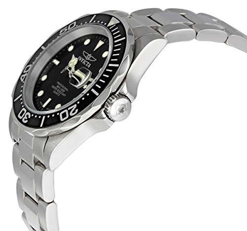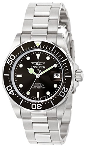 Studio : Invicta Publisher : Invicta Binding : Watch Amazon.com This Invicta Maco Swiss Pro Diver watch exhibits a handsome styling that belies its rugged utility. The shock-resistant stainless-steel, 43-millimeter round case boasts a unidirectional black bezel that measures elapsed time up to an hour. Protected by an anti-reflective, hard mineral crystal with magnifier, the jet-black dial features Trinite luminous white hands and hour markers, and a date window in the 3 o'clock position. This timepiece is showcased on a stainless-steel, 20-millimeter band with a polished-silver finish, and a diver buckle with safety clasp. Simply elegant and supremely resilient, this analog watch is driven by a Swiss quartz movement, and is water resistant to a depth of 660 feet. Pro Diver Collection Plunge into any horizon using the steadfast guidance of the Invicta Pro Diver. Stylishly classic, internal workings are forged with variations of either Swiss chronograph or 21-jewel automatic movements and willingly navigate in depths up to 300 meters. Built with confident prowess, the fortitude with which these timepieces function makes the Pro Diver the quintessential in performance. Screw Down Crowns: Many Invicta watches are equipped with a screw down crown to help prevent water infiltration. This is most common on our Diver models. In order to adjust the date and/or time on such a watch, you must first unscrew the crown before you can gently pull it out to its first or second click stop position. To do this, simply rotate the crown counterclockwise until it springs open. When you have finished setting the watch, the crown must then be pushed in and screwed back in tightly. Not doing so will cancel the water resistance of the watch and will void all warranties from the manufacturer. Overall, this process should not require a lot of effort or force. 0 |