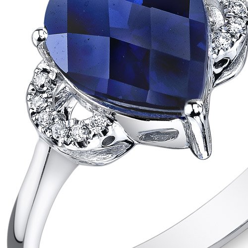 -. Title : Peora 14K White Gold Pear Created Blue Sapphire Diamond Ring (2.8 cttw)