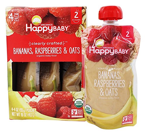 -. Title : HappyFamily - HappyBaby Organic Clearly Crafted Stage 2 Baby Food 6+ Months Bananas, Raspberries & Oats - 4 Pouches