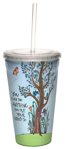 Tree-Free Greetings cc33975 Anything by Joanne Fink Artful Traveler Double-Walled Cool Cup with Reusable Straw, 16-Ounce
