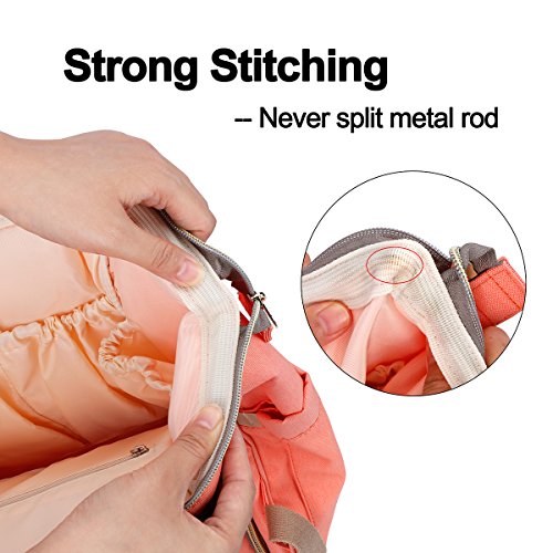 Practical &Convenient Backpack Diaper Bag : The zipper at the top is reinforced with metal that helps the nappy bag for baby care hold its shape when zipped up and stay open when unzipped.