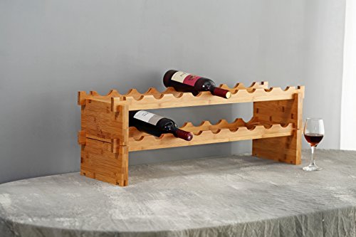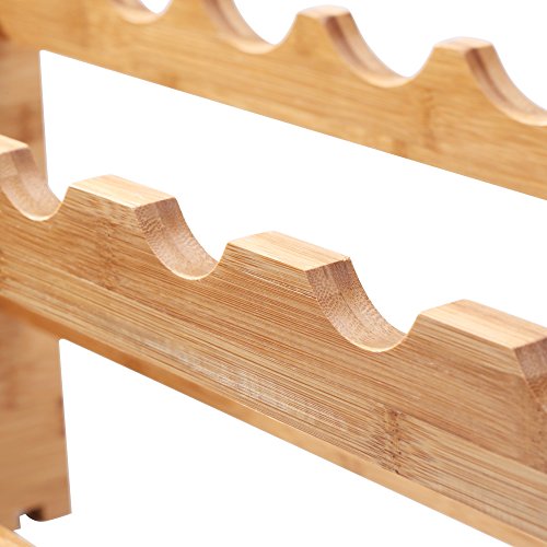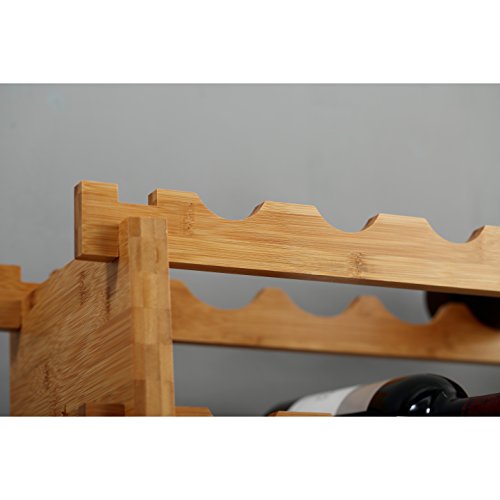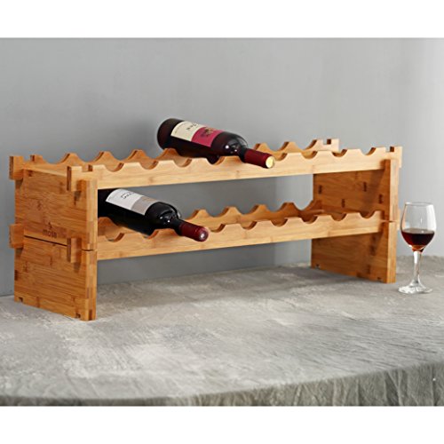 Natural Bamboo Wine Rack (33.5" X 9.4" X 11.5"), Mosa 18 Bottle Free Standing Countertop Stackable Wine Storage Shelf