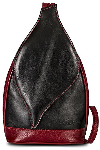 LiaTalia Vera Pelle Made In Italy Kim byLiaTalia Womens Mens Adult Small Little Real Italian Leather Backpack Duffle Rucksack Shoulder Bag - (Black - Red)