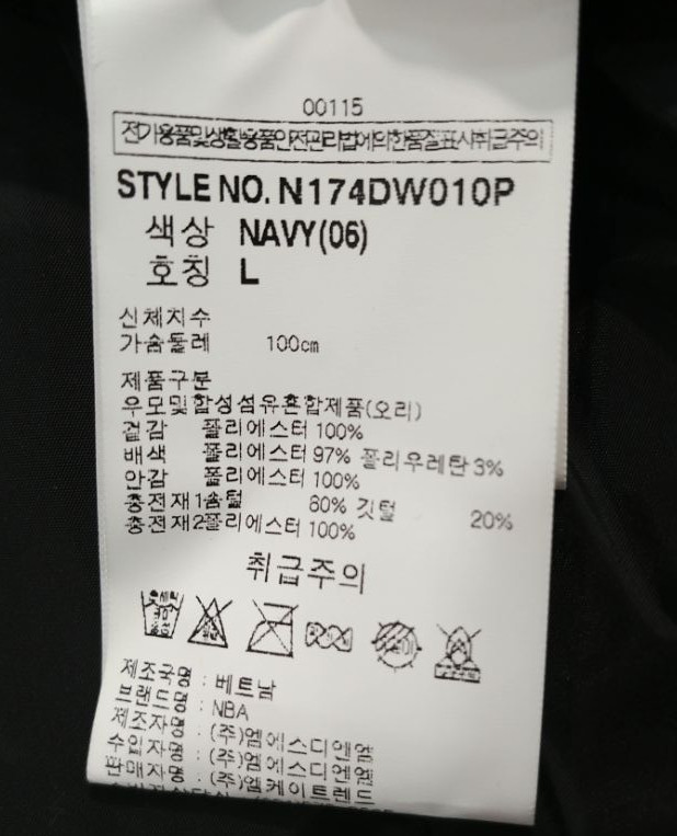 (첫 세탁은 드라이 크리닝을 권합니다)