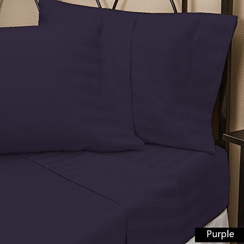 800 Thread Count 6- Piece-Sheet- Set upto 22 inches Deep Pocket 100% Egyptian Cotton Striped Pattern All Sizes & Colors ( King , Purple )