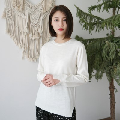 - 가벼운 라운드넥 니트입니다. 기본에 충실한 디자인으로 제작되었으며 적당히 핏되는 실루엣으로 편안한 착용감을 줍니다. 롱 슬리브에 밑단을 컷팅하여 포인트를 주어 여리여리한 무드가 느껴지는 상품입니다. 아이보리 컬러 특성상 비침이 있을 수 있으니 이 점 유의 바랍니다!