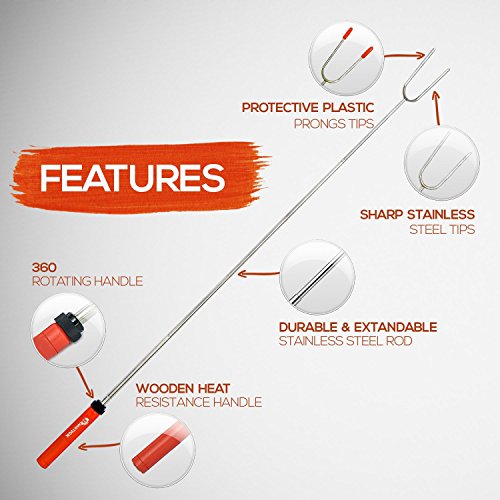 - SAFE FOR YOUR CHILDREN: The 34-inch-Long Extendable Telescopic Marshmallow Sticks Will Keep You and Your Loved Ones At a Safe Distance From Any Fire Pit, Campfire, Bonfire & Outdoors Campfire. The Sharp Prongs Tips With Rubber Protection and The Heat-Resistant Wooden Handle Will Ensure a Safe Environment For Your Family & Children Around The Fire Pit.