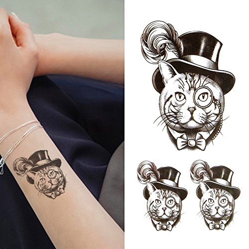 Oottati Small Cute Temporary Tattoo Hat Cat Arm (Set of 2)