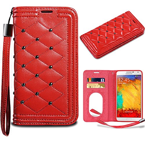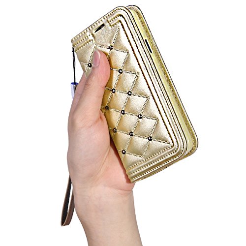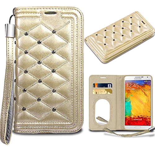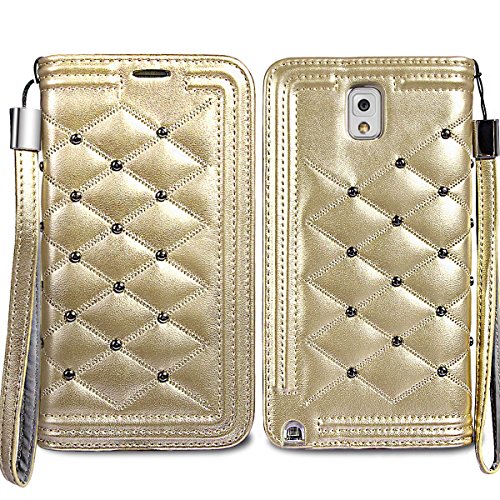 Galaxy Note 3 Case, Wollony Rivet Decorated Quilted Cross 2 in 1 Leather Magnetic Flip Wallet Case Protective Cover with Mirror and Card Holder for Samsung Galaxy Note 3 - Gold