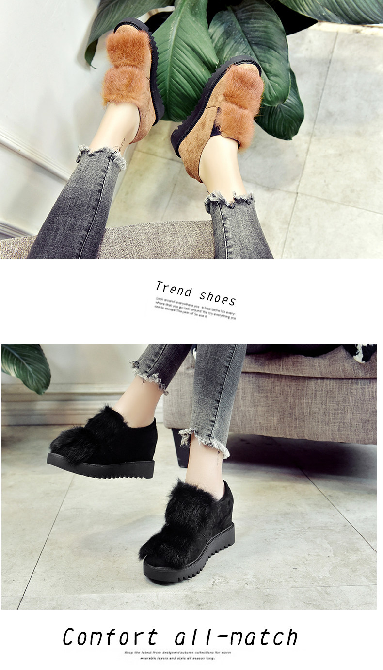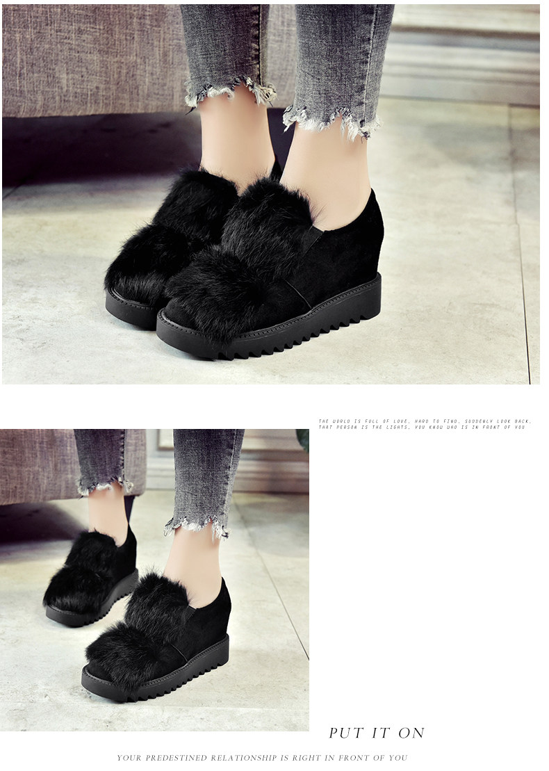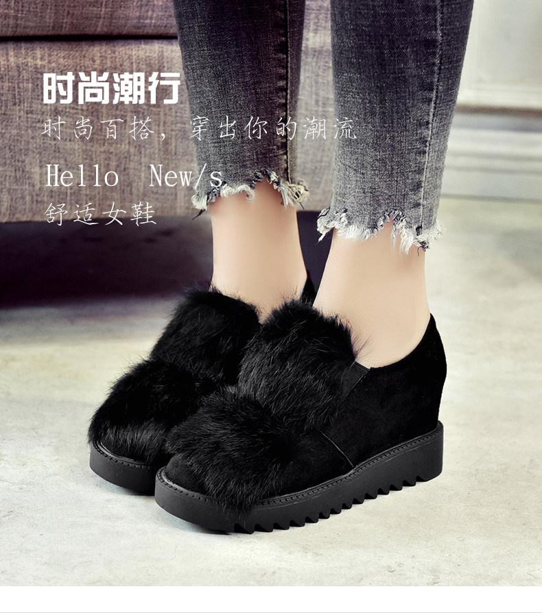 棉鞋女冬季新款毛毛坡跟短靴女内增高冬靴棉靴毛毛靴子女裸靴