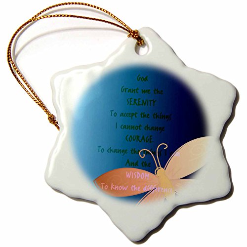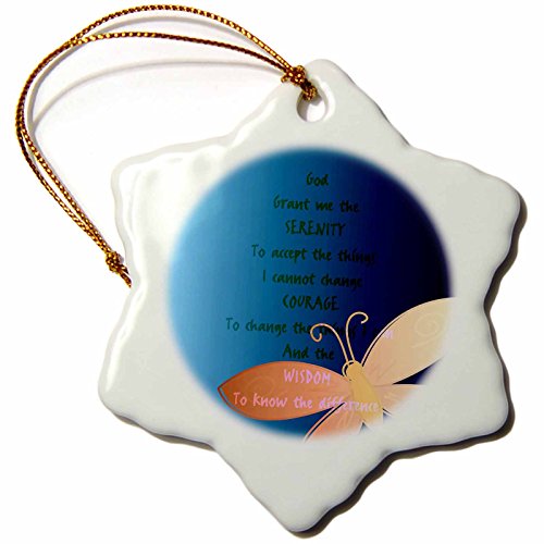 3dRose orn_44720_1 Aqua Serenity Prayer with Butterfly-Inspirational Art-Snowflake Ornament, Porcelain, 3-Inch