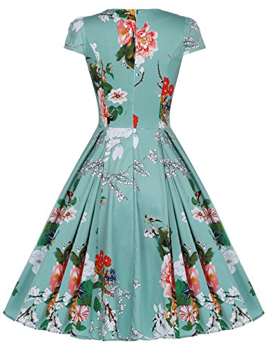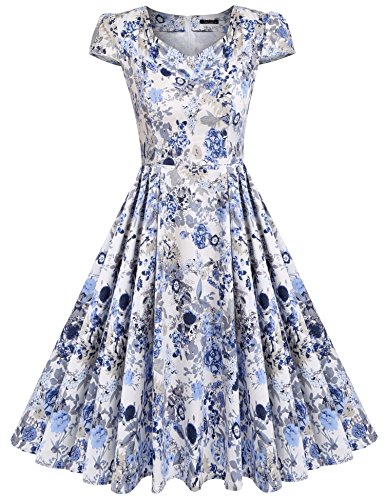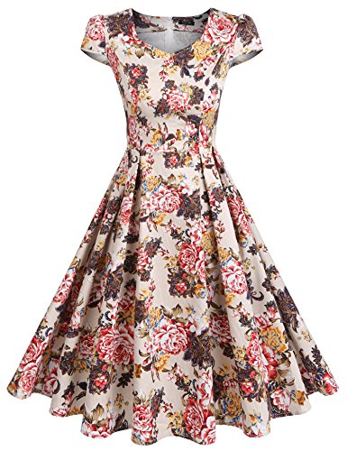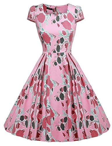 Style: Cap Sleeve, Square V Neck, Vintage Style, Knee Length, Floral, Back Zipper, Dress