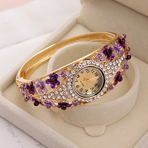 -. Title : Bs1981 Luxury Purple Crystal Bracelet Women Casual Watch Wristwatch Clock 201...