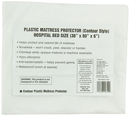 -. Title : DMI Hypoallergenic Contoured Plastic Mattress Cover Protector, Waterproof, Hospital Bed Size, White