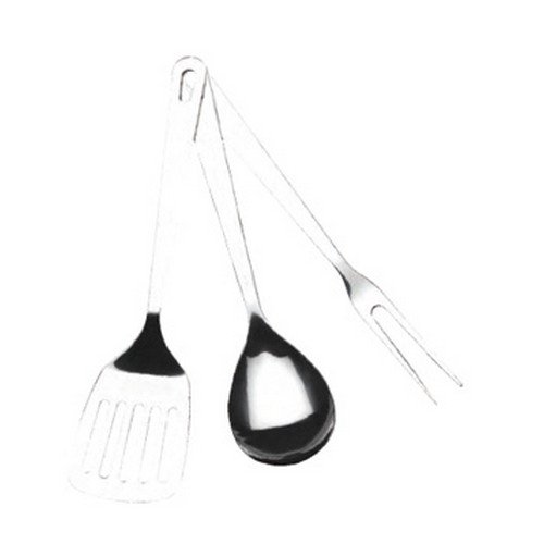 Product DescriptionEasy to clean, will not distort taste. Set contains 13" meat fork, 13" mixing spoon and 13" spatula. Display sleeve.0