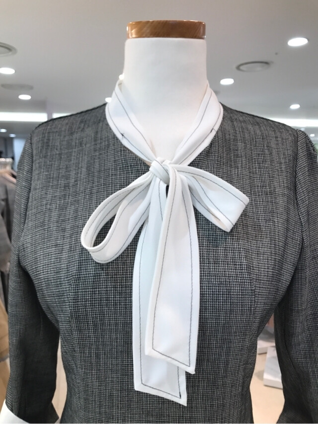 네크의 리본장식이 포인트인 여성스러운 원피스입니다