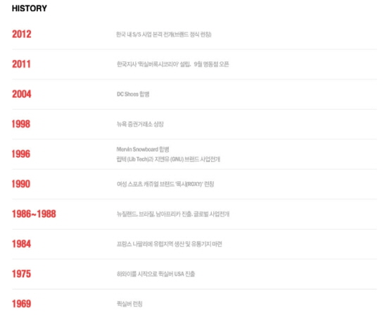 퀵실버(Quiksilver) : 세계1위인 익스트림 스포츠웨어. 창의,모험,진보,그리고 자유의정신을 모토로 1969년 보드숏 라인을 시작으로 설립되어일반 캐주얼 웨어와 보드장비,악세서리까지 다양하게 제품을 발전시켜 왔다.익스트림 스포츠에 대한 철학과 제품에 대한 열정, 지속적인열정,지속적인 연구개발을 통해 익스트림 스포츠웨어분야의 선두주자로 인정받는다.