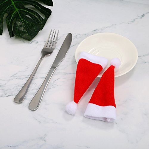 BBTO 12 Pack Christmas Silverware Cutlery Holders Santa Hat Holders Pockets for Christmas Dinner Table Decoration