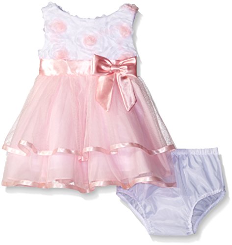 Pink/white soutache bodice to pink mesh ribbon hem skirt social dress with panty
