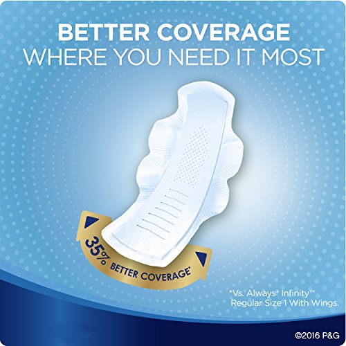 Say hello to the world's first foam pad with always infinity. Made with an ultra-light flex foam material, this form-fitting, revolutionary pad absorbs 10x its weight and molds to your body shape, so you barely feel it. And now you can customize your fit with always my fit, a tailored sizing system to help you find the best protection based on both your flow and panty size. Use the sizing chart in the images to find your fit for day and night. For our best daytime protection, always infinity size 3 heavy overnight pads with flexi-wings are designed with a 35% better coverage for incredible protection. Vs. Always infinity regular with wings.
