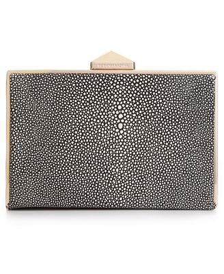 Swimmingly chic. Exotic stingray-embossed leather styles this exquisite box clutch from BCBGMAXAZRIA. Sized right for night, its palm perfect shape stows all your out-on-the-town essentials.