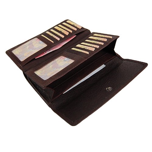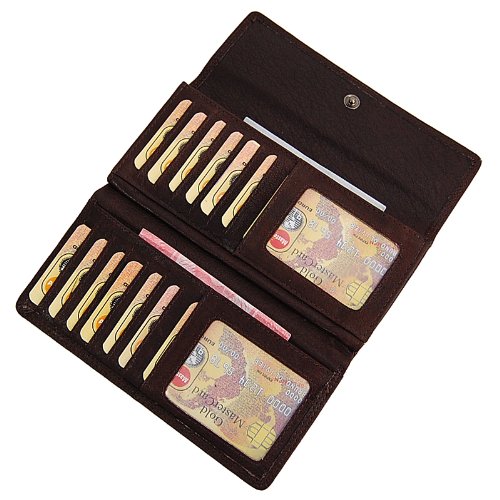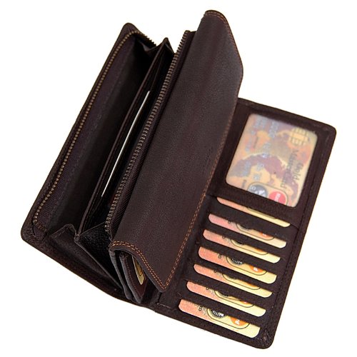 -. Title : Branco Damen Geldbörse 18 cm lang, schickes Portemonnaie aus Buffalo Büffel Leder Kleingeldfach mit Metall Reißverschluss 12 Kreditkartenfächer GoBago