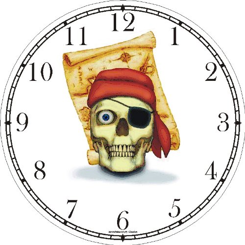 - Title : Skull with Eye Patch & Red Bandanna Hat & Treasure Map - Pirate Theme - JP Wall Clock by WatchBuddy Timepieces (Hunter Green Frame)