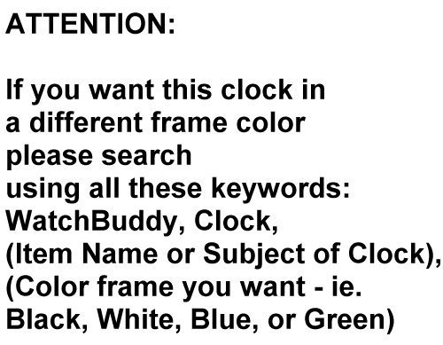 - Feature : WatchBuddy - World's Most Lovable - Wall Clock (Large 10 inch Diameter) / Precision quartz movement - three hands (hour, minute and second) - Two Year Warranty / Beautiful High Gloss Plastic Frame - available in Black, White, Hunter Green and Slate Blue Colors (see swatch). / Requires one AA Battery (not included) / Usually ships within 1 to 3 days