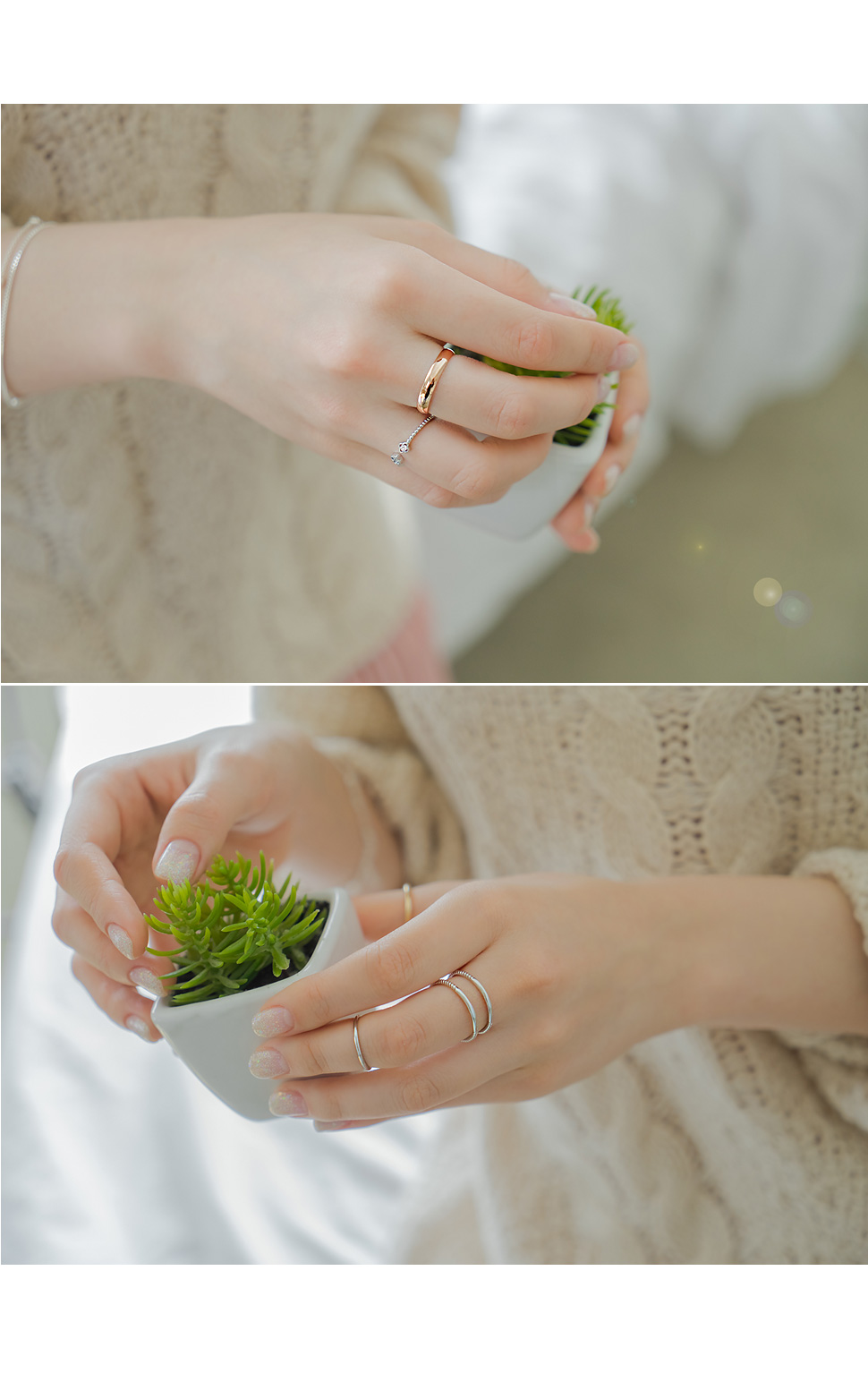 심플하고 여성스러운 무드를 연출하는 링세트.