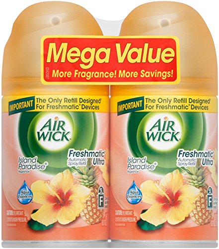 Studio : Air Wick Publisher : Air Wick Binding : Health and Beauty Product Description Air Wick Freshmatic automatic air freshener spray refills work with the air freshener dispenser are designed to add a long-lasting, time-release fresh fragrance to any bedroom, bathroom, hallways, kitchens, living rooms, dens or office spaces. This captures the freshness of a blend of crisp tropical fruits and water flowers from a remote island paradise. This automatic air freshener spray refill is simple to use: just insert it into the air freshener dispenser. When the spray runs out, you can choose to replace it with the same fragrance or a different one. 0