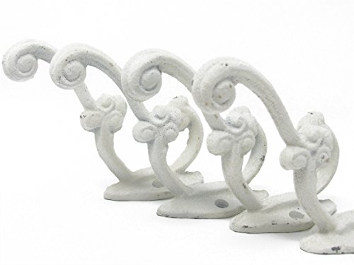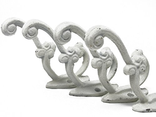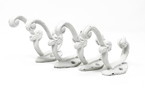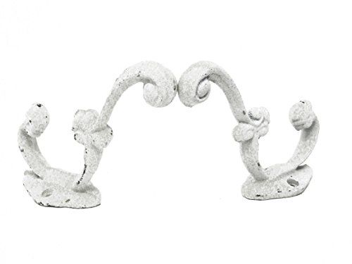 Set of 4 Antique Replica Victorian Rustic White Shabby Chic Hook, Curtain Rod's, Shabby Chic Vintage Wall Mounted Hooks, Excellent for Coats, Bags, Hats, Towels, Scarf’s and more by Ashes to Beauty