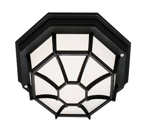 The Benkert Collection is a low-profile style designed to cast a soft ambient light over a wide area. The distinct shape blends with any decor , while also illuminating a variety of outdoor living areas. The prominent web-like metal housing is an octagonal shape. The Benkert 5" Flushmount Lantern accepts a single light, has frosted glass panels and is offered in multiple finish choices. Bulb Type: Incandescent. For Outdoor use. This item is ok for vaulted ceilings. Type of glass is Frosted. The materials used are: Metal, Glass, Electrical. The Finish is Rust. Bulb base is E26. The bulb is not included. This item is dimmable. The bulb shape is A19. Wet listed. Warranty details: One year limited Warranty.Feature