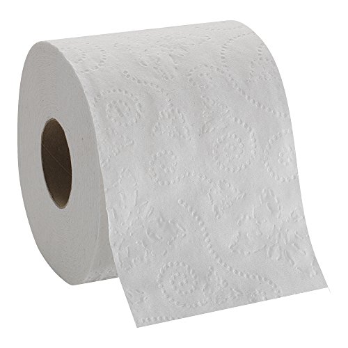 Embossed 2ply white toilet paper provides strength and absorbency