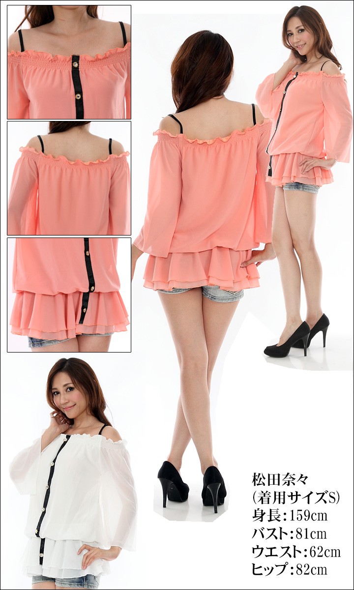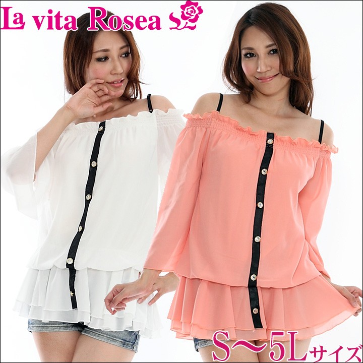 オフショルシフォンチュニック(PF) 大きいサイズ 春 セクシー レディース ギャル服 ギャル 大人 13号 15号 17号 19号 LL 2L 3L 4L 5L 6L 6L トップス