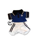 -. Feature : Blue and white soccer outfit with black trim / includes small soccer ball / fits 8 inch plush / 2 piece outfit