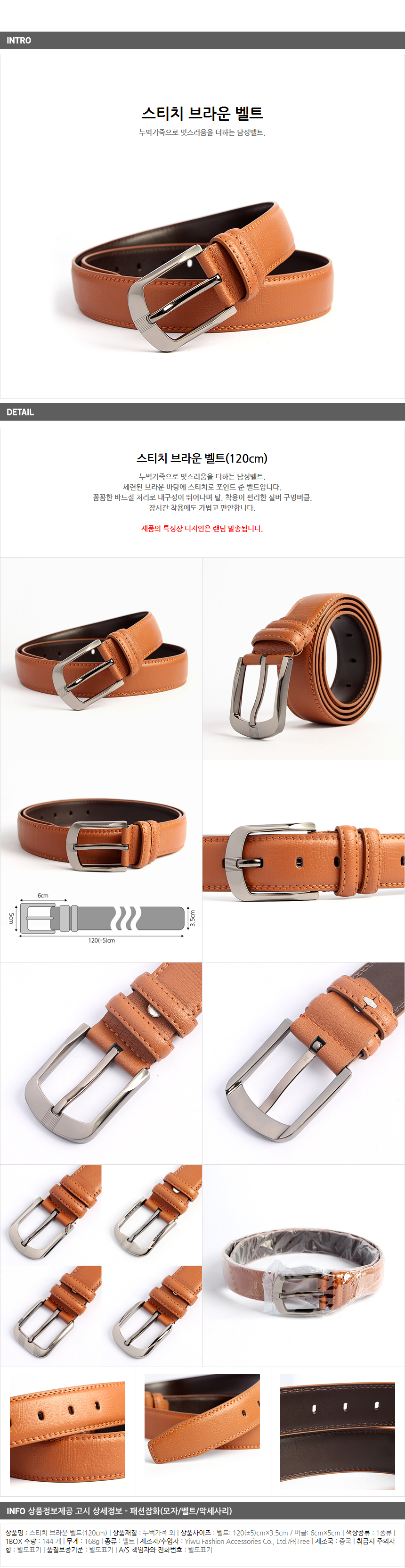 <상품명 : ZP8 스티치 브라운 벨트(120cm)>