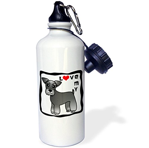 3dRose wb_40884_1 "I Love My Miniature Schnauzer Dog Banded Coat (Salt and Pepper) Red Heart" Sports Water Bottle, 21 oz, White