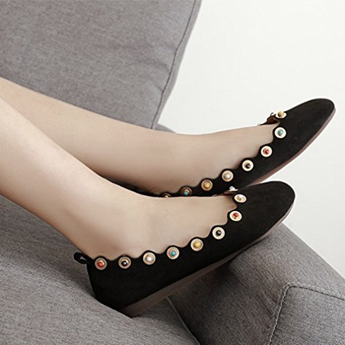 Product Description GIY Women's casual retro suede dress loafer, round toe flat comfort slip on classic loafer, Studded colorful rivets shoes, High quality and durable rubber sole, these fashion casual loafers shoes is great for wearing to work or dressing up an outfit for a day and night out. features cushion soft technology for added comfort. 0