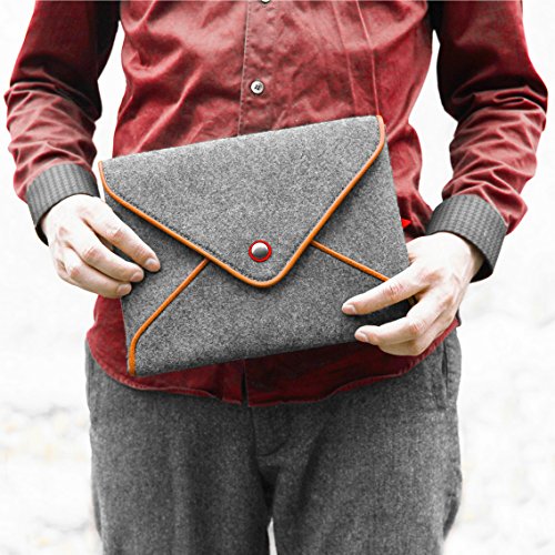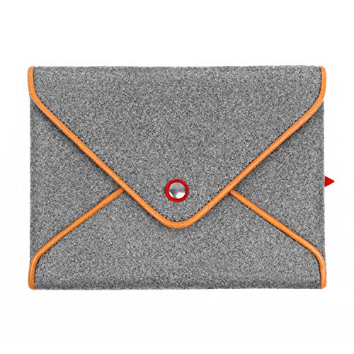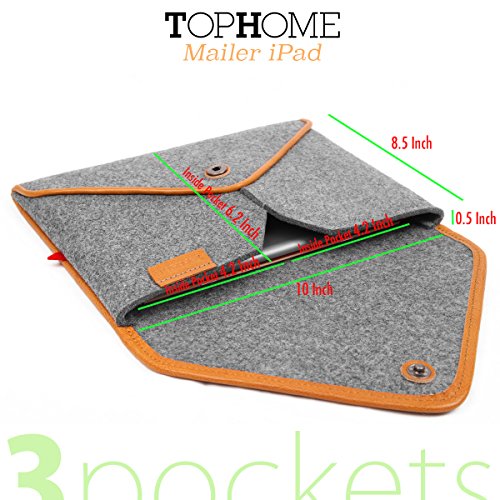 TOPHOME Wool Felt Bag Grey Pouch Cover Button Genuine Leather Edge for Apple iPad Air 1 iPad Air 2 ipad 2,3,4