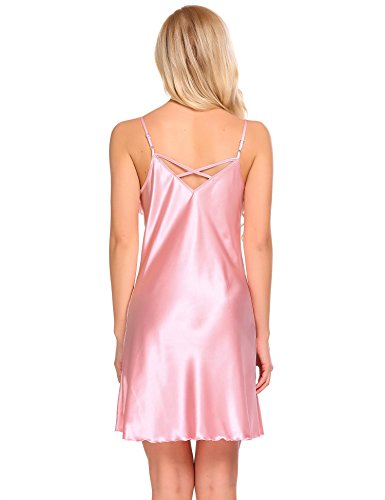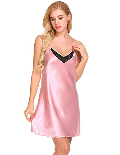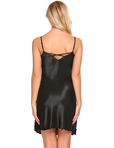 -. Title : Ekouaer Sleepwear Womens V Neck Chemise Nightgown Full Slip Lace Lounge Satin Dress S-XL