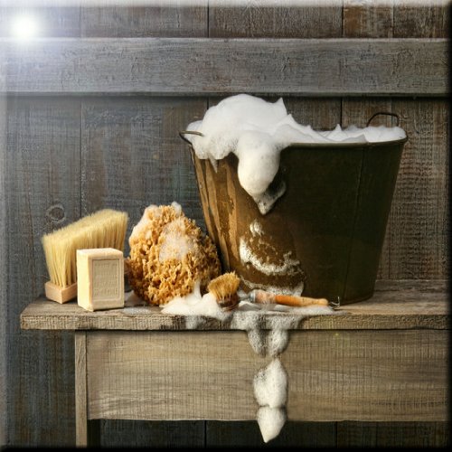 Rikki Knight RK-12intilec-8914 12" X 12" Old Wash Tub with Soap on Bench Design Ceramic Art Tile