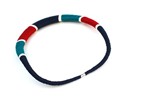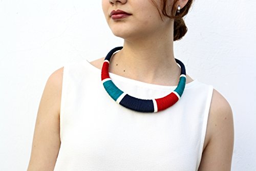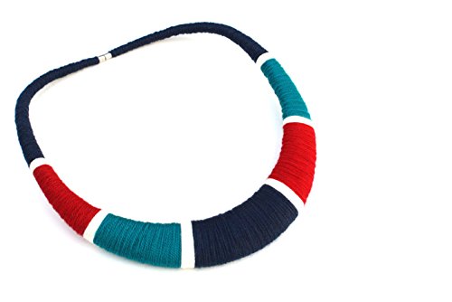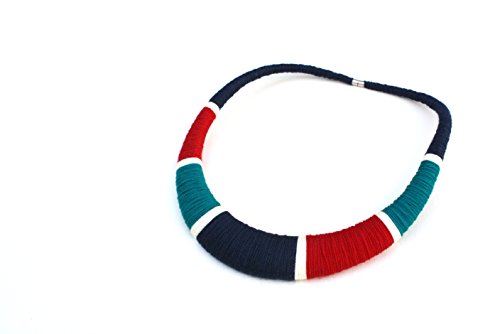 -. Brand : Milo Necklaces -. Color : Dark Blue Teal Red White -. Department : womens -. IsAdultProduct : 0 -. ProductGroup : Guild Product -. ProductTypeName : GUILD_JEWELRY -. Title : Dark Blue Teal Red White Tribal African Ethnic Handmade Wrapped Textile Crochet Statement Fashion Ecofriendly Collar Necklace Jewelry Jewellery Made with Cotton Threads