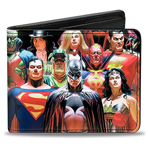 -. Binding : Apparel -. Brand : Buckle Down -. ClothingSize : One Size -. Department : mens -. Feature : Measures 4 x 3.25 x .25 inches when closed; 8.25 x 3.25 x .125 inches when open / Interior features 3 card slots, 2 slip pockets, 1 ID slot, and 1 full length bill compartment / DC Comics Justice League multi-character image on full exterior / Black interior; / Made in the USA -. Label : Buckle Down -. Manufacturer : Buckle Down -. PackageQuantity : 1 -. ProductGroup : Apparel -. ProductTypeName : ACCESSORY -. Publisher : Buckle Down -. Size : One Size -. Studio : Buckle Down -. Title : Buckle Down Men's DC Comics Justice League Bifold Wallet