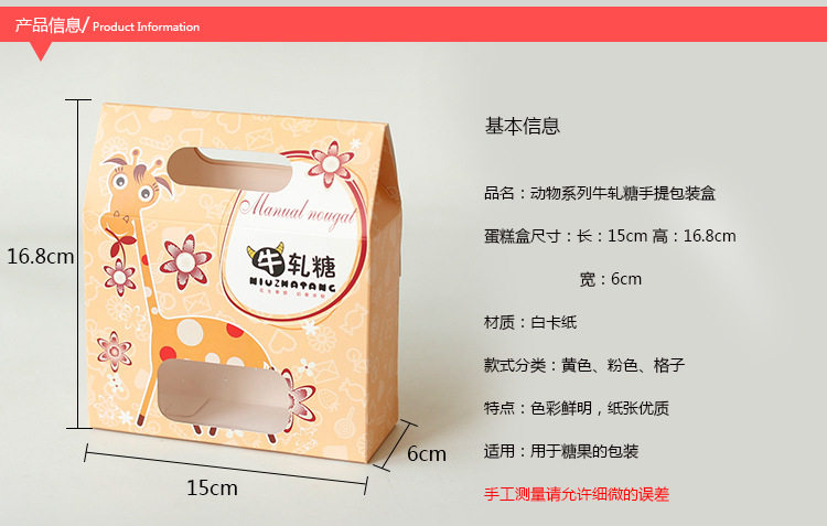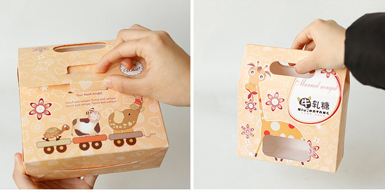 烘焙包装 卡通手提牛轧糖盒包装盒 饼干小西点盒 糖果盒 5个装