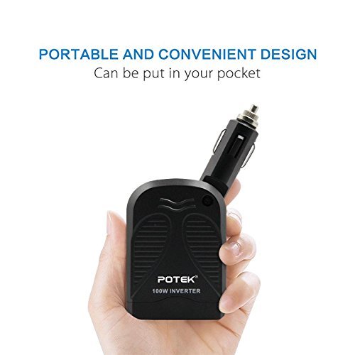 - Potek 100W power inverter provides 100 Watts continuous power - 200 Watts surge power,LED Indicator light (Green=Power ON, Red=Failt,Alarm)