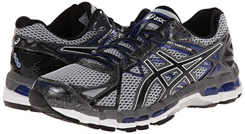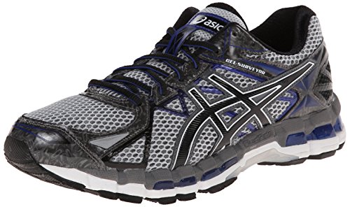 Studio : ASICS America Corporation Publisher : ASICS America Corporation Binding : Shoes Product Description There's no need to mull over the decision to lace into the ASICS® GEL-Surveyor™ 3. One stride in its pillowy plush and stable platform is sure to make you a true believer! Successor to the GEL-Surveyor 2 (no longer available). Built for the moderate overpronator who requires a combination of enhanced cushioning and stability. Breathable mesh upper with synthetic overlays. Plush tongue and collar. Breathable fabric lining offers a great in-shoe feel. Removable foam footbed. ComforDry™ sockliner provides cushioning performance and anti-odor properties for a cooler, drier, healthier environment. I.G.S® (Impact Guidance System) is an ASICS design philosophy that employs linked componentry to enhance the foot's natural gait from heel strike through toe-off. FluidRide™ midsole provides the ultimate combination of bounce back and cushioning properties with reduced weight and exceptional durability. Rearfoot forefoot GEL® cushioning systems work together to better attenuate impacting shock and allow the foot to move fluidly throughout the gait cycle. Dynamic DuoMax® System increases stability and support with reduced weight and enhanced platform comfort. Midsole Height:Heel/Toe: 22 mm/12 mmDifferential: 10 mm AHAR® rubber is known for its supreme durability and is strategically placed throughout high-wear areas of the outsole. Guidance Trusstic System® integrates Guidance Line® construction to enhance gait efficiency while promoting mid-foot structural integrity. Imported. Measurements: Weight: 14 oz Product measurements were taken using size 12, width D - Medium. Please note that measurements may vary by size. 0